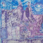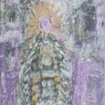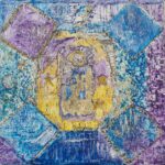 L’artiste travaille avec minutie principalement l’acrylique sur toile, utilisant pinceaux, impressions, inclusions, feuille d’or, relief, tout cela dans une transe méditative ontologique qui lui fait vivre des expériences extraordinaires.